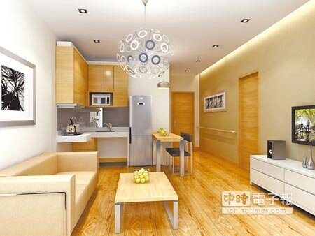 新北市城鄉局將改建的永和區秀朗派出所暨社會住宅導入「通用設計」概念,方便各族群居住。圖為社會住宅室內模擬圖。(記者池雅蓉/攝影)