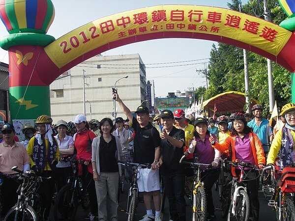 彰化縣田中鎮公所主辦的2012田中鎮環鎮自行車逍遙遊暨農特產品展售,29日上午在田中鎮兒童公園登場,田中鎮長鄭俊雄鳴槍後, 3000多輛鐵馬沿著自行車道,體驗田中的田園風光與鄉村風情。