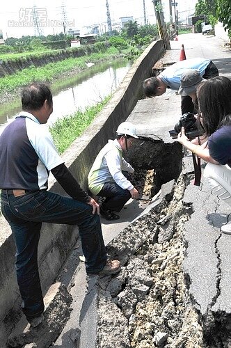 彰化市莿桐里彰水路207巷旁的花壇排水防汛道路塌陷,8月27日僅有數條姆指大的裂痕,到了3日意然下陷深160公分,寬度從10公分到100公分,溝岸崩塌情況嚴重,彰化市長邱建富再度趕到現場,指示工務課再拍照,將相片與公文再次呈報縣府儘速處理,以免影響民房安全。
