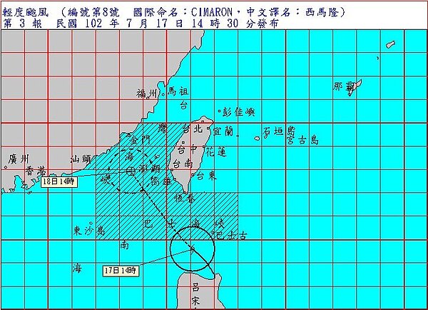 輕颱西馬隆雖然不會對全島有劇烈影響,但仍會對東南部地區帶來豪雨。(翻攝自中央氣象局)