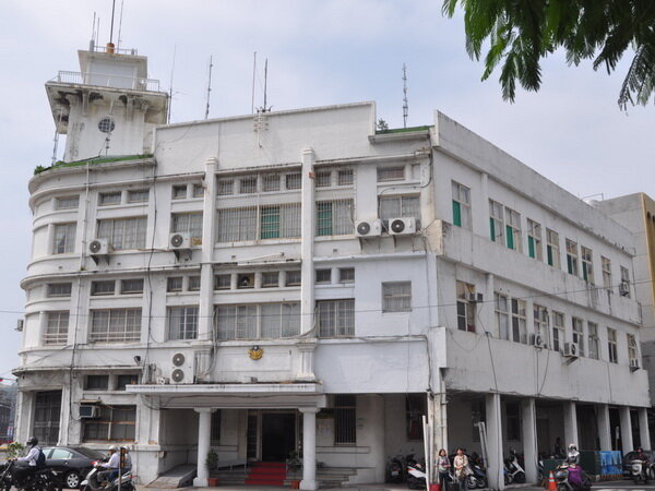 中間的突出端部為「錦町派出所」,位於現在的中正路與民生路一段的馬路口,光復後改稱民生派出所,2003年民生派出所裁撤,目前鐵門深鎖。