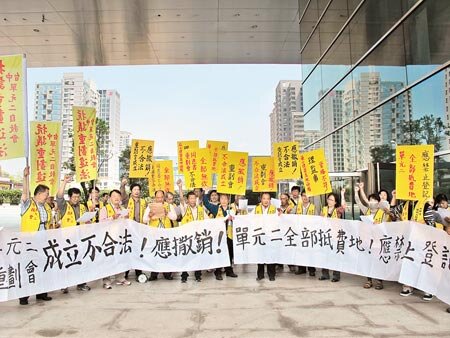 由於重畫會未解決地主的抗議,昨天上午由部分地主組成的自救會,由會長黃國書率領近百名地主代表到市議會陳情。黃國書氣憤表示,單元二重畫會的組成不合法,其中有數百人為人頭會員,地主認為重畫會土地分配過程不合法,已向法院提出告訴。
