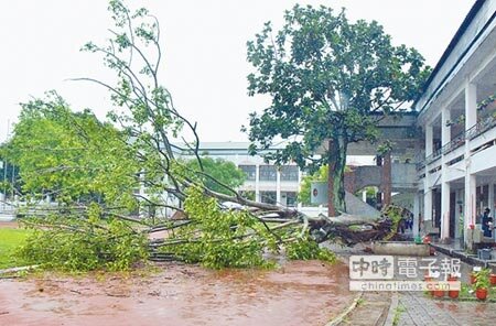 此外,昨天中午台東市康樂國小3年級教室前的1棵10多公尺高的印度橡膠樹,底部折斷倒塌,所幸當時學生在教室裡吃午餐,但是巨大聲讓學生們嚇了一大跳。老師趕緊到外面查看,大樹倒向操場,沒有倒向教室,學童虛驚一場。