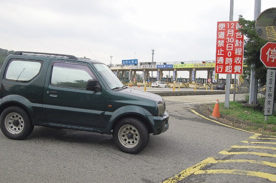 國道計程收費今天凌晨上路,不僅各收費站吹起熄燈號,收費站南、北向便道也將走入歷史,為提醒用路人別誤闖,高公局在各便道出入口都立牌公告「30日0時起,便道禁止通行」。