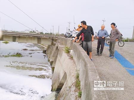 附近漁民到場關心汙水排放,擔心汙染影響漁獲。(記者莊明勳/攝影)