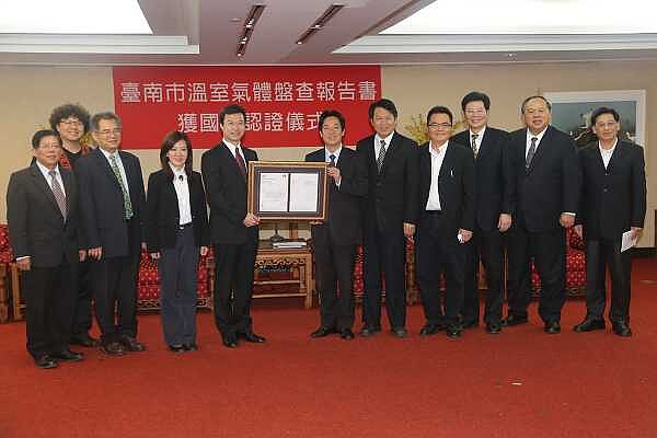 台南市政府為掌握台南市溫室氣體來源,據以擬定削減溫室氣體的政策,率先執行溫室氣體盤查,提出「台南市2010年溫室氣體盤查報告」。這項報告今年取得ISO 14064-1:2006國際標準及環保署委託的英國標準協會(bsi)國際認證,成為台灣第一個完成城市溫室氣體外部查證,並取得聲明書的城市。
