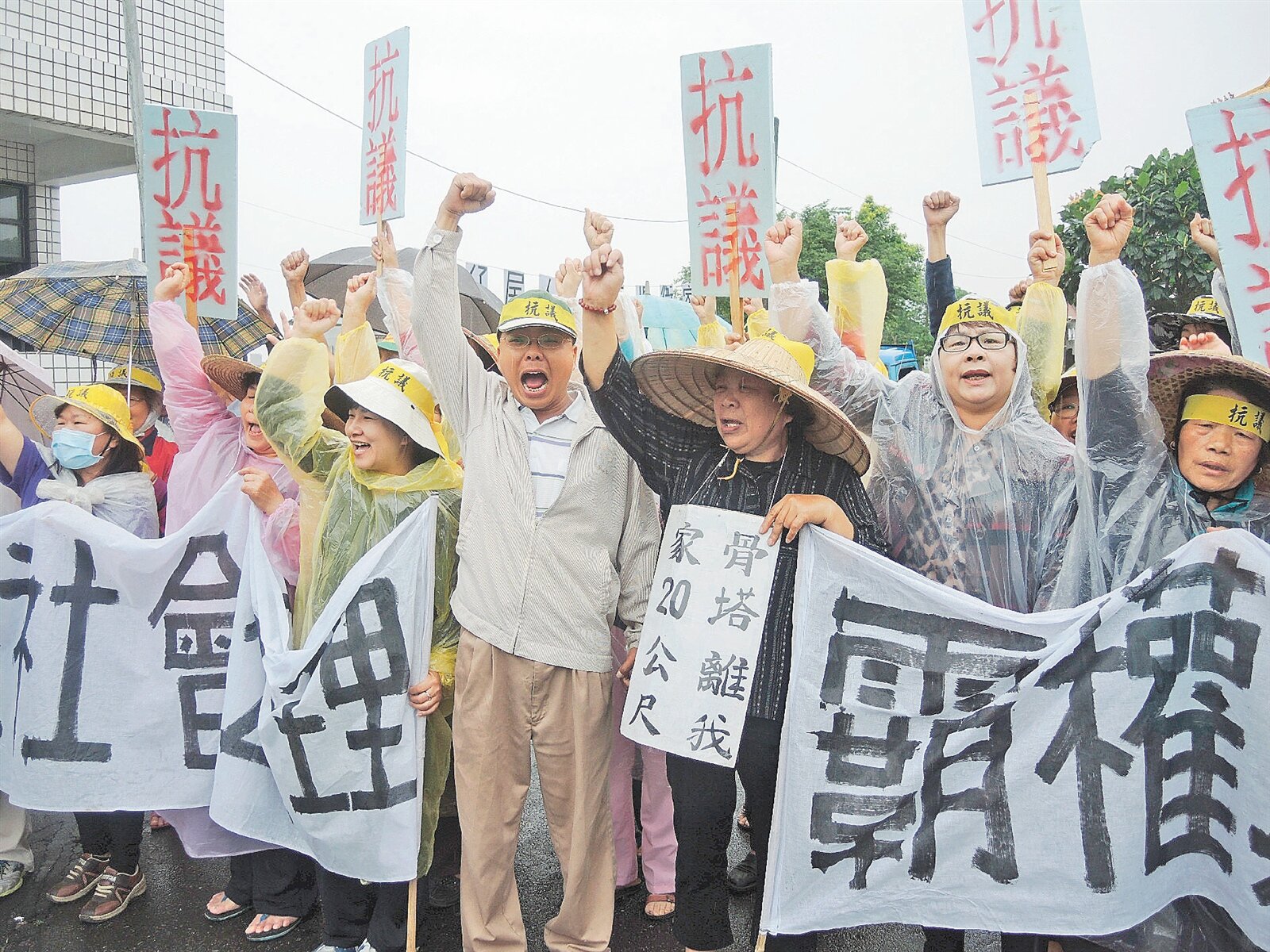 宜蘭壯圍鄉紅葉村民不滿公所欲建納骨塔,近百人齊聚呼口號抗議。(記者林縉明/攝影)