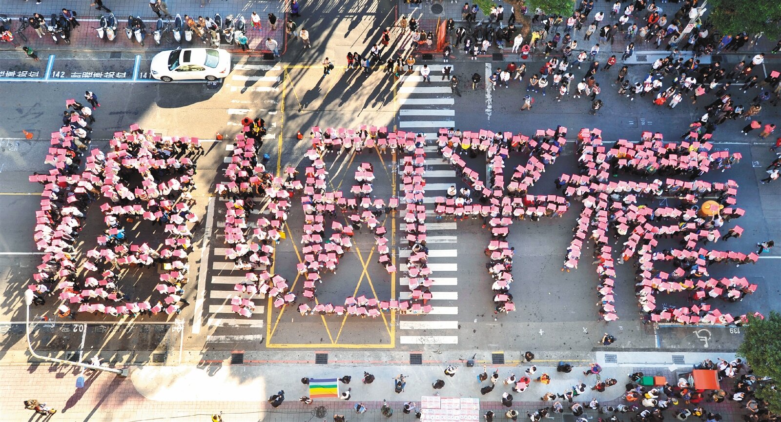 台灣伴侶權益推動聯盟昨天下午號召逾六百人,手舉「多元成家我支持,速速立法反歧視」的標語,在立法院旁以人牆排出粉紅色、黃色「婚姻平權」四個大字,力挺同性婚姻合法化。作家陳克華、紀大偉、釋昭慧法師及立委段宜康等人現身支持,現場多為年輕臉孔,也有夫妻帶孩子上街。