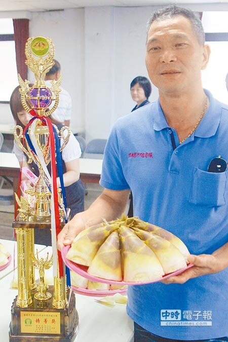 基隆綠竹筍評鑑比賽昨日在基隆市農會登場,共有36組農友參賽,透過檢視綠竹筍的外觀色澤、柔嫩度、糖度和重量等項目進行評分,各組分數在伯仲間。最後,由有機栽種的農友林玉娟脫穎而出。林玉娟昨在七堵市場賣竹筍,由另一半陳兩成代表領獎。