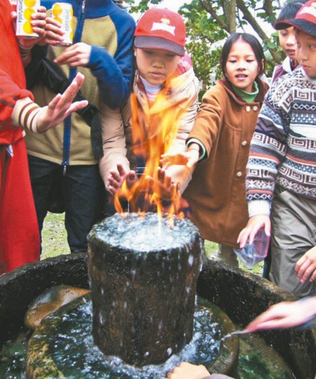 宜蘭縣冬山河親水公園有座隱藏版的湧泉井,在水上點燃沼氣,形成「水火同源」的奇景,網友稱為「秘境」;縣政府擔心遊客故意「集氣」,造成火勢過大,易釀成危險,不開發使用。