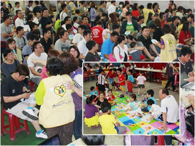 宜蘭縣青年好young健檢擠爆現場,特別設置兒童遊戲區貼心服務。〔圖/記者張淑玲攝〕