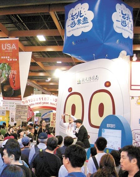 旅展昨日上午10點開放入場,但9點不到就有民眾排隊,從早到晚,台北世貿旅展一館國內外旅遊展區、民宿美食區或三館飯店區都是人潮,加上表演團體,讓展區內幾乎寸步難行。