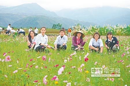 國立羅東高商餐飲科學生,三個月前為休耕地撒波斯菊種子作為綠肥,昨日進行田間管理,等待明年二月春耕,之後也將參與人工補秧、收割、碾製等過程。
