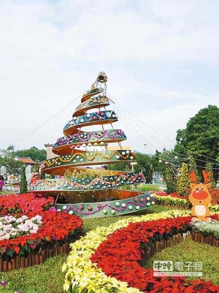 從年底到明年初,花博公園都有花可賞!一年一度台北花卉展13日登場,14個主題展區將一路繽紛到明年1月11日,因展期遇到耶誕節和跨年假,今年主題訂為「花現藝樹、聖誕紅了」,將有36棵創意造型耶誕樹,以及多達12品種、6000餘盆的聖誕紅。