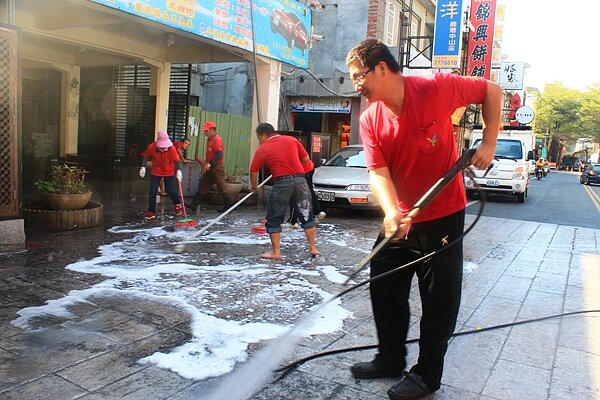 近來清潔隊發現,鹿港鎮有多處景點是鋪上石磚或紅磚,地上常有檳榔汁與飲料的污漬,或是煙蒂、垃圾卡在縫隙中,嚴重影響市容的清潔。因此,清潔隊主動出擊,針對鹿港公會堂前、城隍廟前與藝文廊道、第一市場前等路段進行清洗,先以高壓水柱沖洗,再行刷洗路面,恢復原有的面貌。