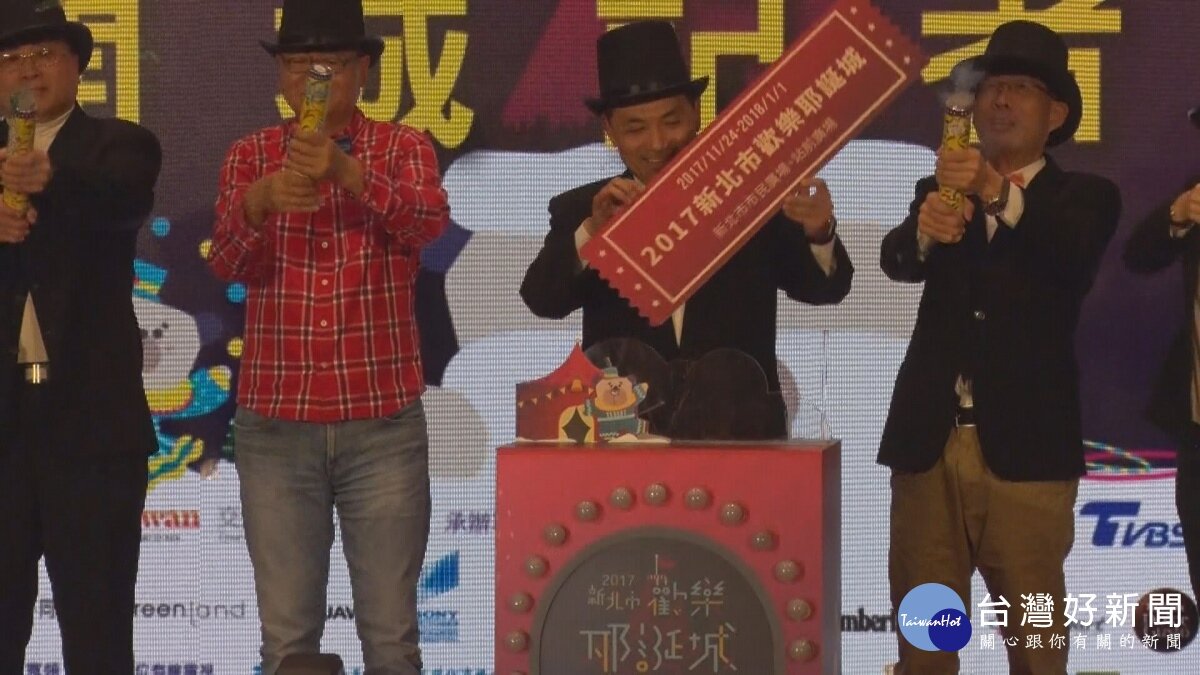 新北市副市長侯友宜插入馬戲團票券,宣告「2017新北歡樂耶誕城」正式開跑。今年耶誕城以充滿奇幻、歡樂、華麗的馬戲團為主題,將從11月24號持續到明年1月1號,連續舉辦39天,除了有令人驚奇的視覺饗宴外,也把活動燈區擴大到板橋火車站的站前廣場。