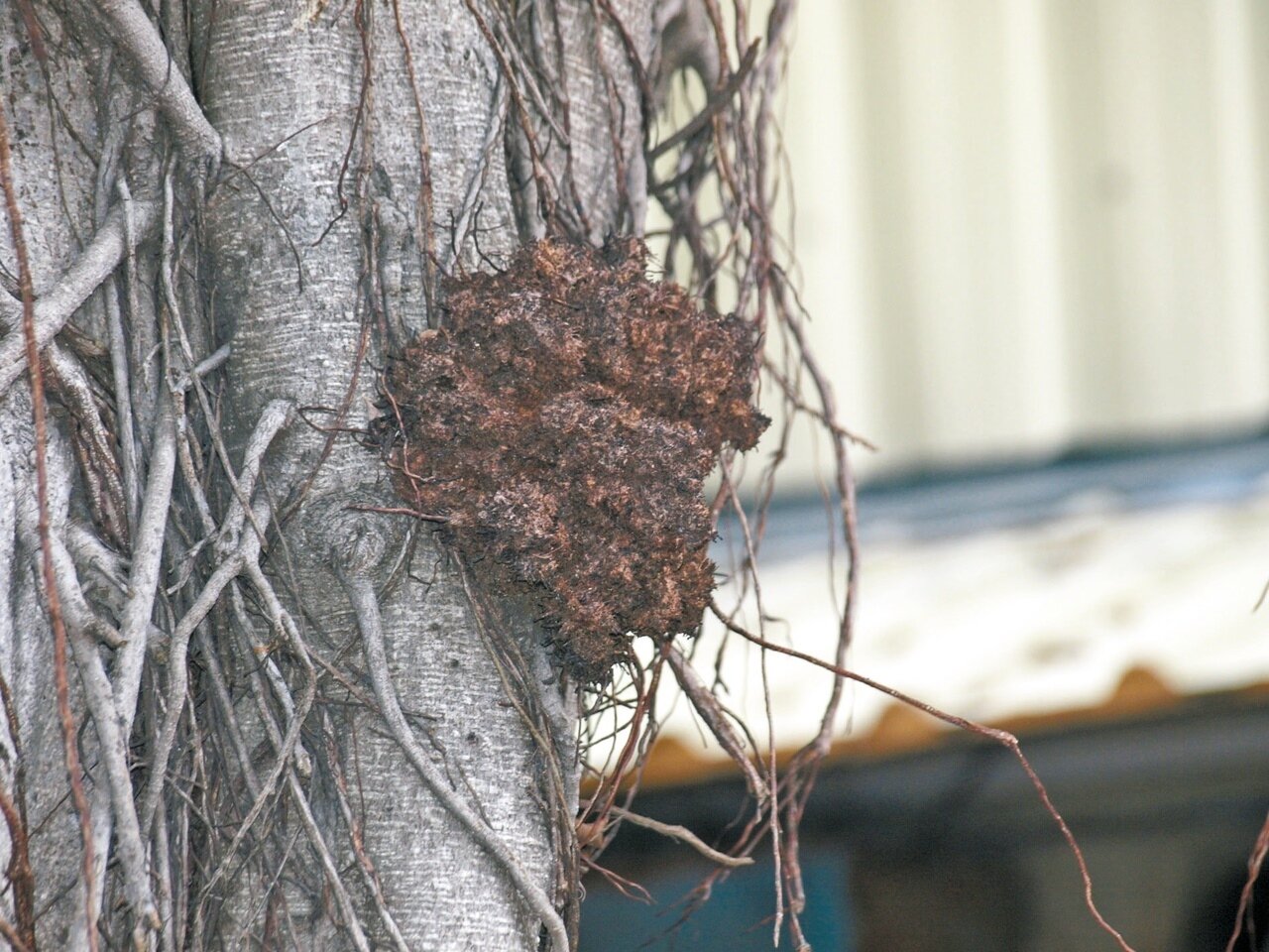 陳姓市民說,數周前在鄉土文化館前乘涼時,突發現館前榕樹長出的樹瘤像劍獅;中間突出部分,有如劍獅的鼻子,凹陷的地方,好像眼睛,下方部分橫置的氣根,有如劍獅口中所咬的劍,若加上一點想像力,有如劍獅在樹幹上。