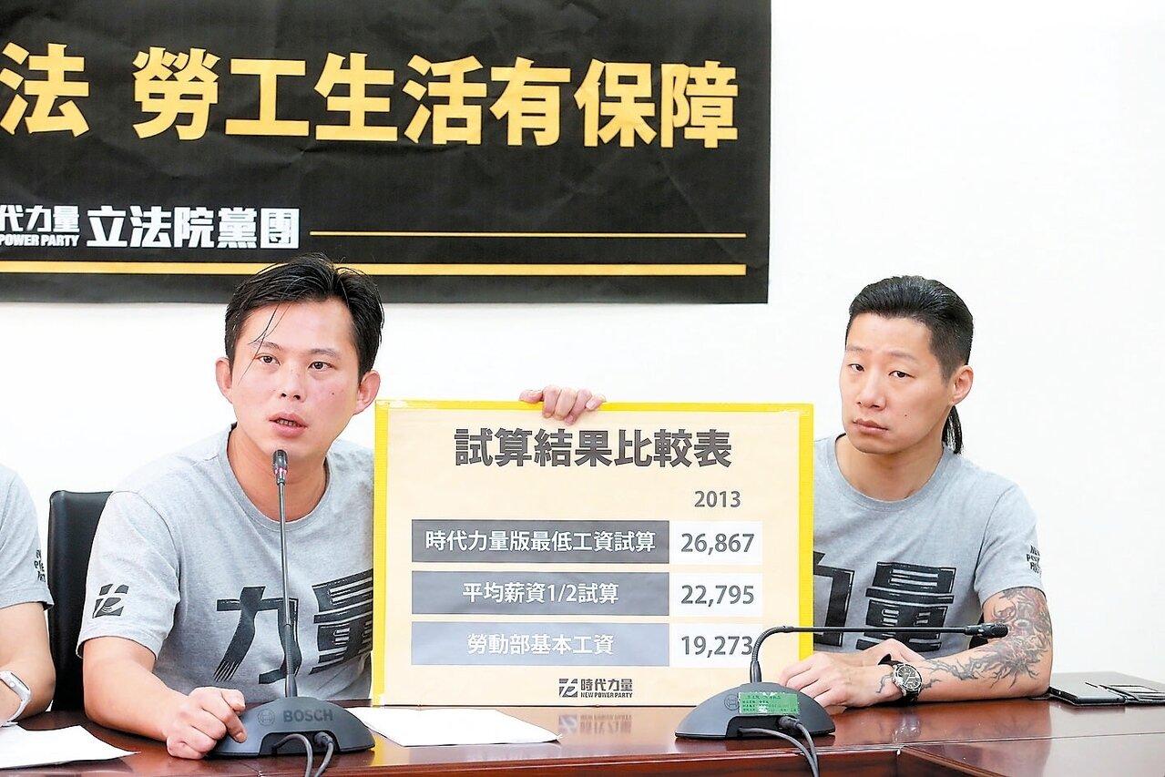 時代力量立委黃國昌等人參與排字,並宣布時代力量已經完成「最低工資法」草案,今天就會提案。