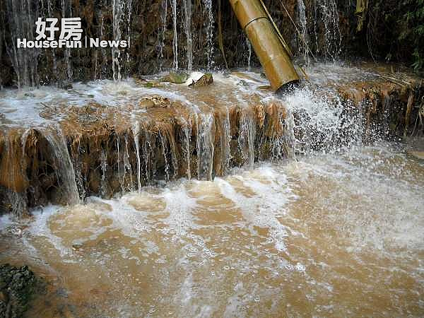 「詠泉企業有限公司」將染整作業黃色廢水繞流排放污染新店溪。(記者黃村杉攝)