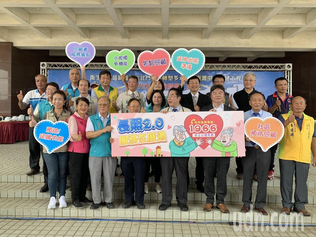 王必勝表示,感謝地方支持才有這個案子,代表3大意義,一是政府持續推動長照的決定;二是中央和地方密切合作,感謝市府團隊願意代辦這項工程;三是國有資產再活化,也期許北門分院是政府推動多元長照的示範點。