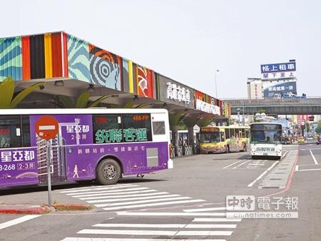 年限老舊、外觀斑駁灰暗的高雄火車站前公車站在交通局與公共汽車客運公會聯手改造,29日煥然一新。 (劉宥廷攝)