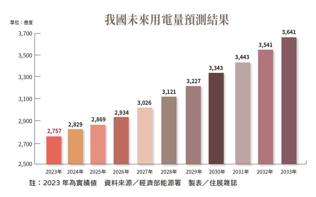 以國內用電大戶台積電為例,自該公司同年開始在台灣量產三奈米晶片後,用電量已呈倍數增長,占比整體用電量達8%、工業用電量達約16%;從最簡單的供需法則思考,一旦發電量供不應求,勢必影響電價持續高漲,去年上半年電價漲幅也確實高達四成。