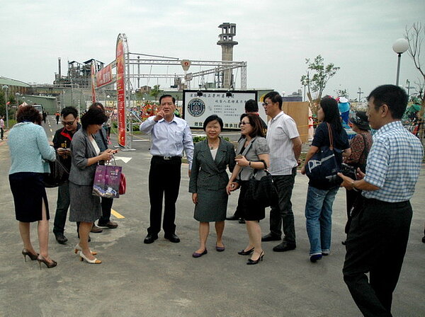 市長許明財見到不少遊客在中秋節週日假期的白天就來到台灣館,也及時邀集城市行銷處長陳進來、文化局長林榮洲、工務處副處長陳永源等,就園區內導覽指引、休憩空間整理、安全設施確認,指示再做最後檢查,讓來此觀賞台灣館山水心燈的朋友產生滿意的迴響,激發更多口耳相傳的傳播效果。