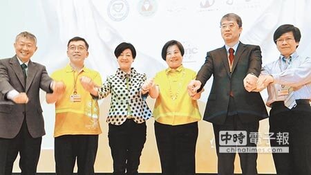 台積電帶頭關懷長者,10日成立台南「愛.互聯」關懷老人中心,台積電董事長張忠謀夫人張淑芬(左三)亦到場參與。