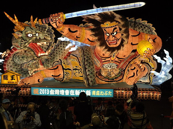 具有250年歷史的日本青森睡魔祭巨燈,28日晚間在竹北市光明六路、文興路、嘉豐五路上進行台灣颩燈會遊行踩街,欣賞燈會及踩街民眾高達150萬,眾人皆夾道驚呼燈會好看,「龍王」燈車的技藝與氣魄同樣令人印象深刻。