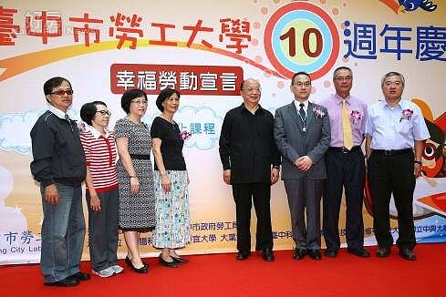 台中市勞工大學創校滿10週年,8日市長胡志強以勞工大學校長身分,邀請歷屆校友、企業代表於台灣大道市政大樓共同慶祝台中市勞工大學10週年慶;未來勞工大學將持續增加據點、提供e化課程,並增加學分認證課程,提供想進修的勞工最優質的課程。