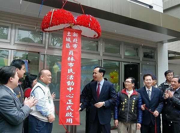 土城區員林市民活動中心落成啟用,新北市長朱立倫主持揭牌。(圖/土城區公所提供)