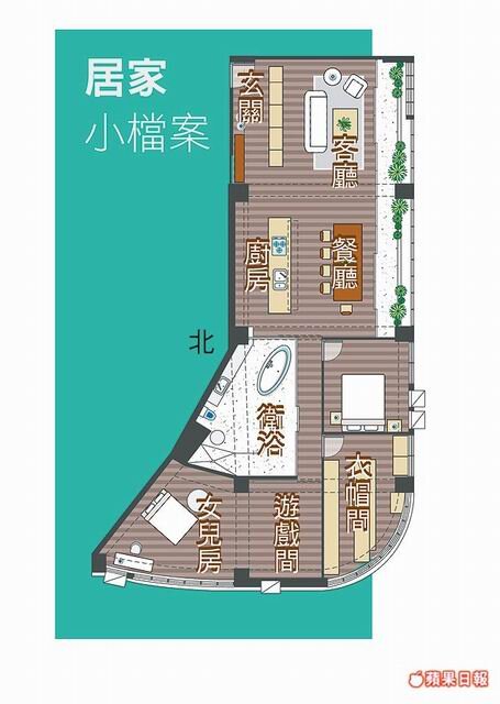 風水是包益民的第一考量,買這間房子是因為風水好。其次,是決定每個空間的大小。他說:「我有一次住在巴黎的Le Royal Monceau Hotel,覺得那個房間的大小剛好,很適合睡覺,所以將尺寸量一量,主臥房就照著規劃,然後再決定其他空間的尺寸。」