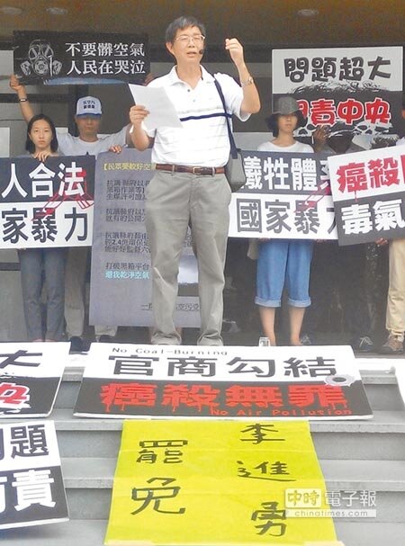 抗PM2.5行動聯盟等環保團體29日抗議縣府與六輕溝通平台淪為黑箱,民眾要乾淨空氣,縣府卻展延2許可證2年換2.4億路道維護費,罔顧國人健康;縣府強調基於信賴保護原則展延,道路基金則在2010年就已提撥,與環保監督無關。