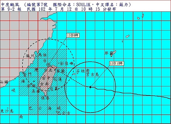 蘇力颱風強勢來襲,花蓮縣政府為此延期多項活動,全力防災。(翻攝自中央氣象局)