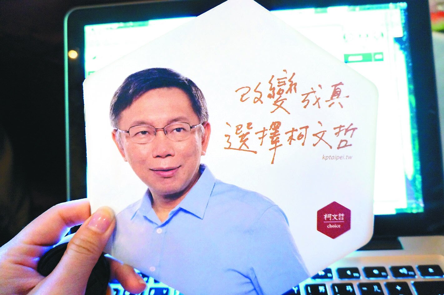 市長參選人柯文哲昨推出第一批紙本競選文宣。(記者高詩琴/攝影)