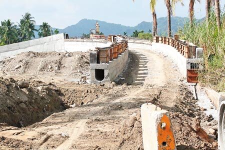 12月將完工的東河橋拓寬村里聯絡道路,遭居民批太狹窄無法會車。(林雅惠攝)