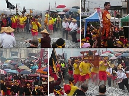 五結鄉二結王公文化節日前舉行壓軸「抓童乩 跳過火」儀式,1萬2仟台斤木炭堆成的大火堆,規模之大為全台之最,乩童率信眾踏過炙熱火堆,雖天空下著綿綿細雨,仍吸引數以千計民眾圍觀,相當熱鬧。