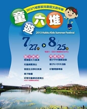 六堆客家兒童藝文嘉年華活動時間從7/27(六)到8/25(日)止,本次活動以「童遊六堆」為主題,將串連藝文匯演、手作DIY課程、親子動畫影展、戶外親子活動、好書閱讀專區等主題活動讓孩子們從遊戲中學習,探索客家文化寶藏。