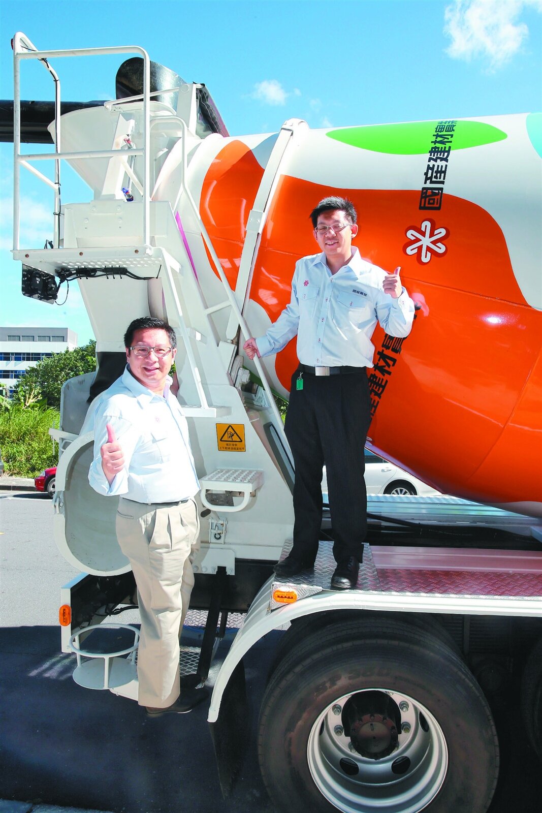 徐蘭英說,為了追求這個具備環保與節能減碳目標,國產今年已斥資近1億4千萬元,率先同業引進每台要價400多萬元,並獲得環保五期認證的預拌混凝土車,第一批30台預拌混凝土車已全部就定位,車子除裝上GPS導航系統,能讓公司隨時掌握車子的行駛流向,且整個都是覆包式的,不致在行駛中有混凝土外洩,造成環境汙染的問題。同時車身特地以大自然繽紛色彩妝點,藉以凸顯國產集團長期來在環境保護的堅持與努力,且更讓每日穿梭於各大城市街道的預拌混凝土車,成為都市的新亮點。