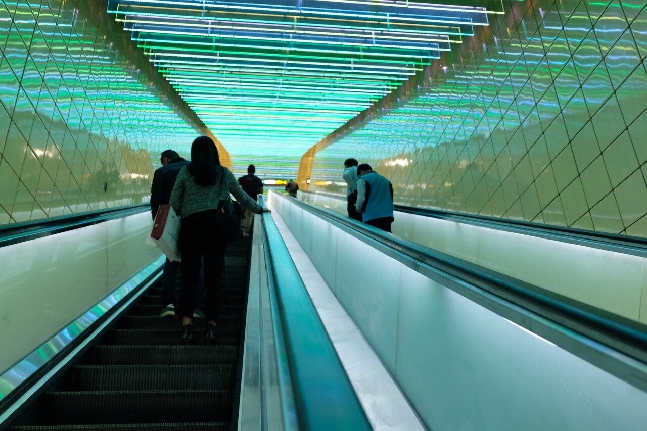 許多人在台北搭手扶梯都習慣站右邊,但台北捷運表示「靠右站立」的規定早已取消。聯合報系資料照片/記者張曼蘋攝影