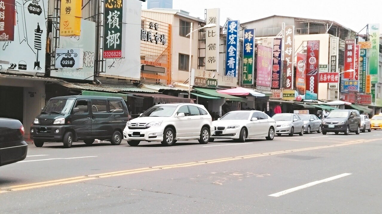 苓雅區青年路商圈、光華夜市,違停幾乎天天上演。青年路國民市場、忠孝夜市車水馬龍,道路兩側停車格永遠不夠停,慢車道常被車輛占據。光華夜市缺乏停車格更是誇張,一入夜3線道就變成1線道,連快車道都淪陷。