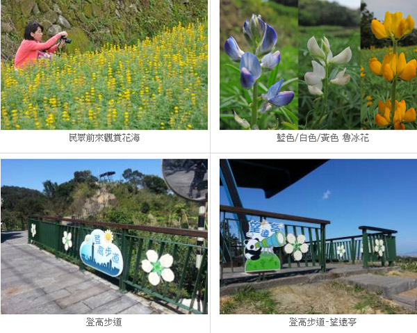 「貓空」擁有綿延的山巒美景、層疊的茶園閒趣,是北市最知名的茶鄉。今年新完成「小天空步道」新景點,可體驗360度超廣角視野,居高臨下欣賞貓空的秀麗山谷,充份感受視覺感官震憾,且正值全國唯一魯冰花海盛開,滿山遍野,搖曳生姿,並搭配落羽松綻放新葉,綠意盎然。