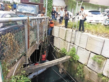 稽查不法新北市環保局利用科學儀器,稽查各式各樣水汙染案不遺餘力,圖為稽查人員深入溪流查緝汙染的場景。(記者林金池/攝影)