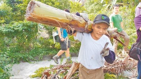 台鐵舊宿舍用地經綠美化後,成為市區難得的蝴蝶棲地,因該筆土地將被收回,黎明院生昨也前往協助清理。(記者阮迺閎/攝影)