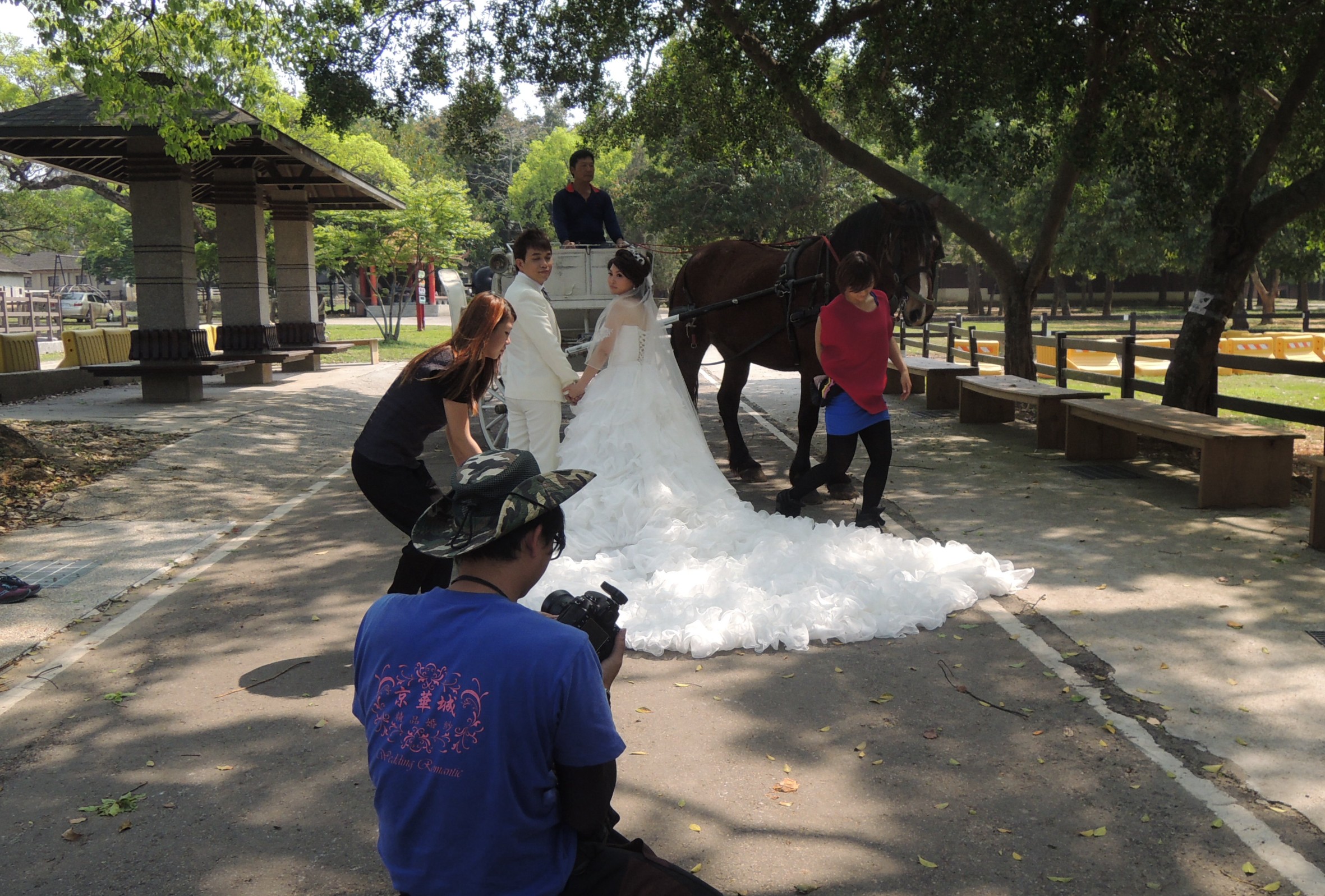 台中市府觀光旅遊局推出「愛你一世 后里馬場浪漫婚紗季」活動,讓國內準新人免費體驗騎乘駿馬或乘坐馬車拍攝婚紗,日前有兩對新人在馬場拍歡婚紗,與馬兒分享幸福喜。觀光局並表示,凡是屬馬、姓馬的民眾,憑證件一整年內都可免費入園。
