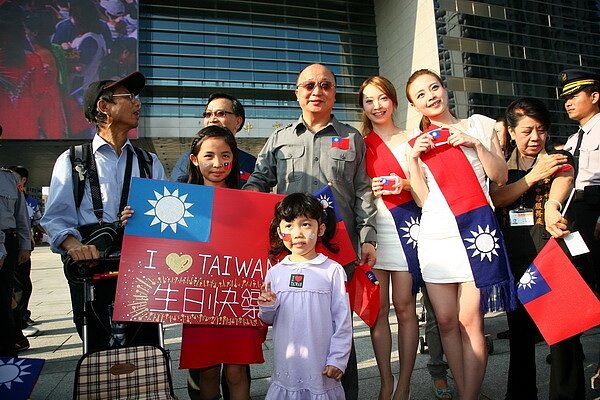 雙十國慶台中市政府前升旗典禮許多民眾扶老攜幼一起參加相當熱鬧。(照片提供:台中市政府新聞局)