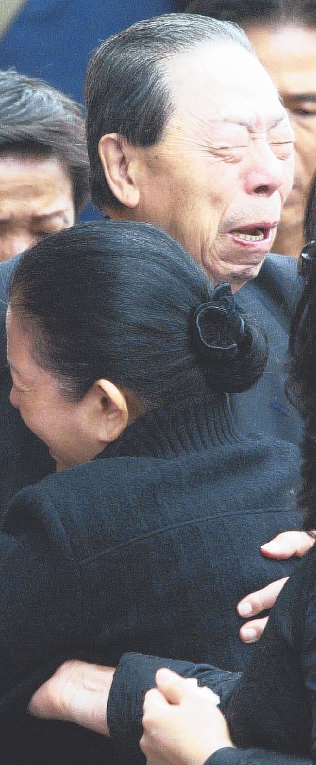 台塑關係企業創辦人王永在,在哥哥王永慶過世時,與三娘李寶珠(前)相擁痛哭,那一聲「阿兄啊」,兄弟情深,令人動容。