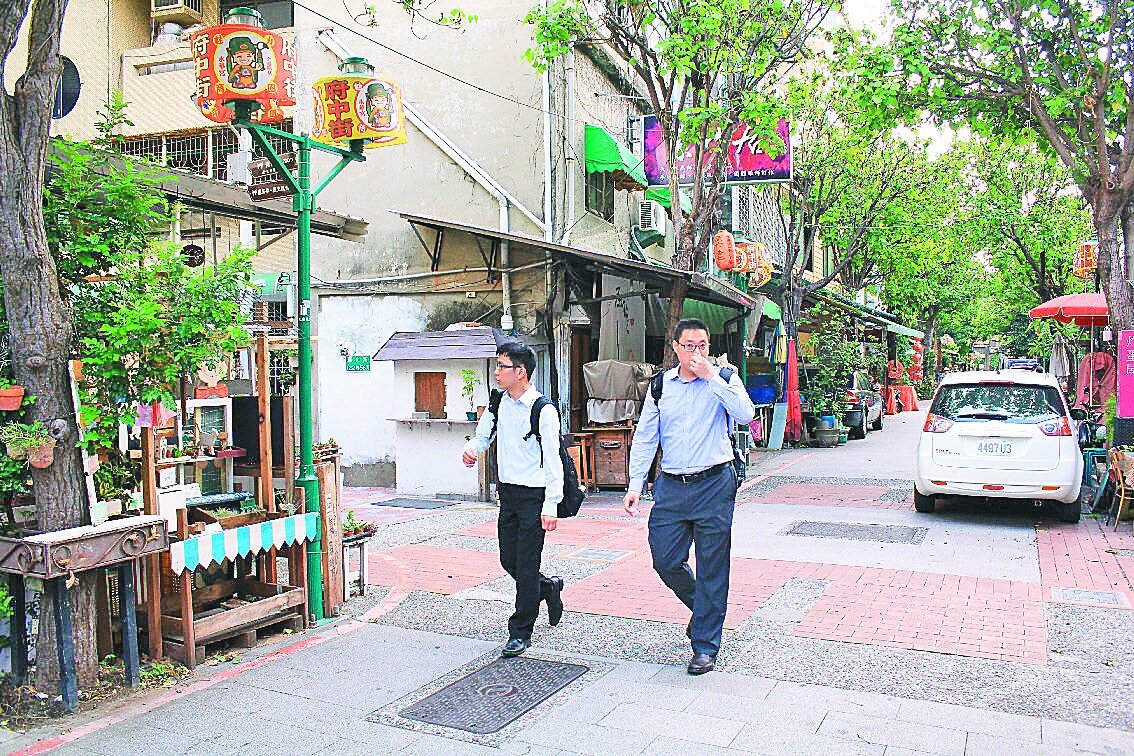 有居民反映府中街店家占用道路,造成巷道出入不便,向市府檢舉違建。(記者鄭宏斌/攝影)