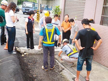基隆港東岸聯外道路南段工程預定十月初完成,十二月底完工通車,包商趕工收尾,孝東路住戶卻發現自家前的馬路愈來愈高,高低差達四十公分,萬一碰上下雨水,家門前豈不變成滯洪池,遂向市議員何淑萍、孝深里長陳茂松陳情。