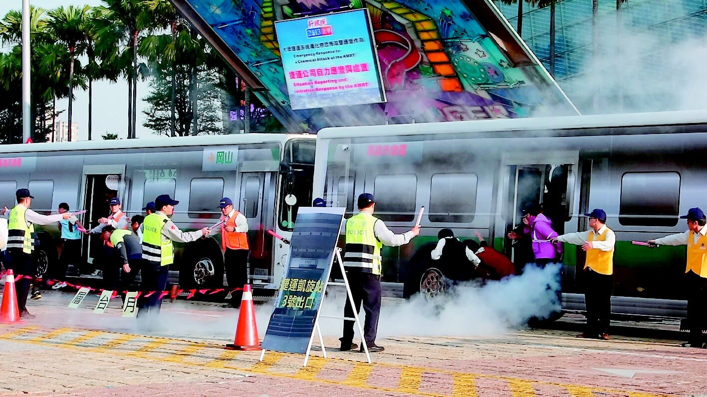 模擬高雄跨年晚會會場,施放煙火時,舞台西側出現爆炸,造成民眾傷亡,趕緊疏散人群外,警方出動保三總隊警犬現場搜索可疑物,與拆解爆裂物。第三場模擬恐怖分子,挾持公車逃離跨年晚會會場,警方出動直升機、垂降夢時代頂樓監控,也以悍馬車、V150裝甲車攻堅。